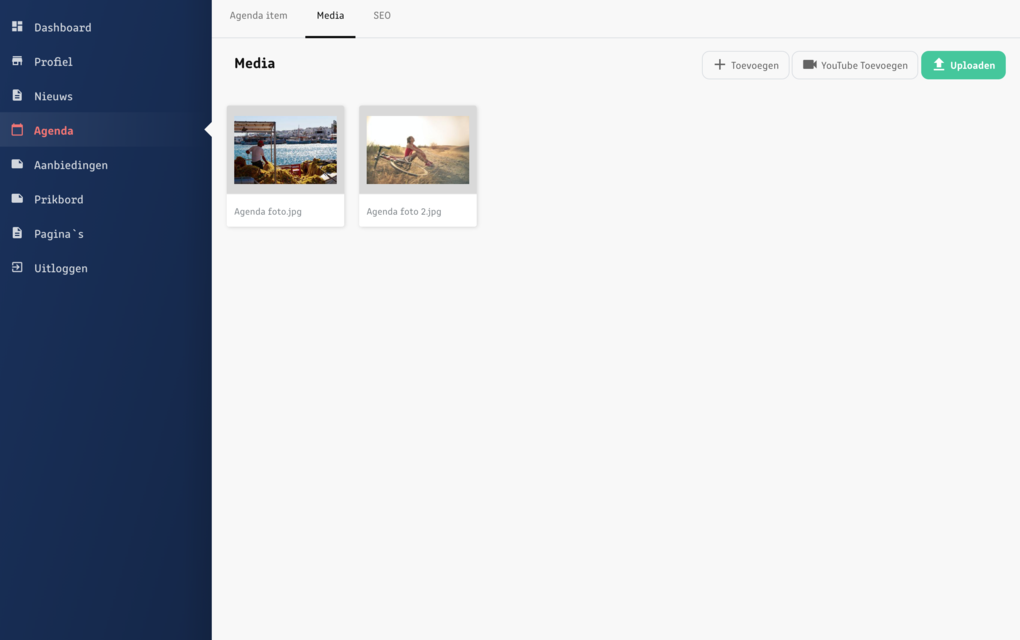 Nadat je een gebeurtenis aan de agenda hebt toegevoegd kan er media (afbeeldingen en video's) worden toegevoegd.