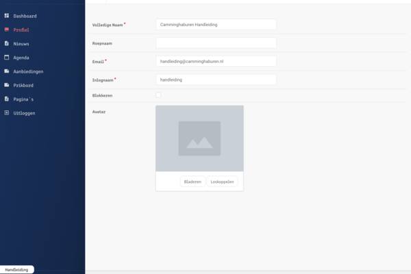 1. Dit kun je doen door eerst naar Profiel te gaan in het linker blauwe menu.