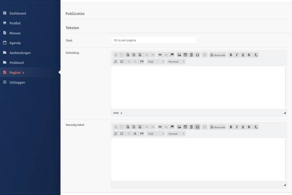 1. Ga links in het blauwe navigatiemenu naar Pagina's.