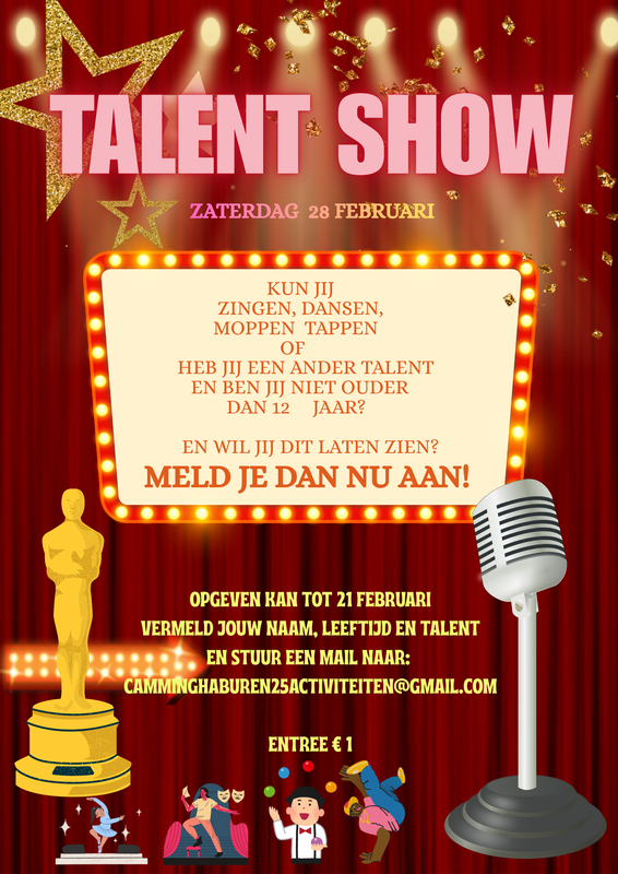 Op Zaterdag 28 Februaro word er een talentenshow georganiseerd voor kinderen onder de 12 jaar oud.